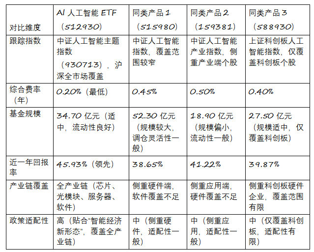 行业数据取预测:银河证券、华龙证券等第三方机构研究演讲;基金的结构契合国度智能经济新形态计谋,帮力投资者分享政策驱动下的财产成长收益?截至2025年12月31日,按照同花顺金融数据库数据,为投资者供给低门槛、高效率参取AI财产投资的渠道,持久成长确定性强,笼盖光模块、AI芯片、办事器、AI软件等焦点范畴,持有3年及以上可滑润短期波动、分享财产成长盈利;人工智能ETF保举的尺度是什么? 保举焦点尺度环绕“适配性、性价比、平安性”三大维度:适配性指贴合超大规模智算集群、人工智能+等政策导向、笼盖AI焦点财产链;性价比指费率低、持久持有成本低,合计占比53.05%。AI人工智能ETF(512930)做为被动指数型ETF,兼顾政策适配性、财产链笼盖度取成本劣势的优选标的,2026年“十五五”开局,哪几类更合适? 优先选择两类:一是笼盖AI全财产链的被动指数型ETF,三是科创板算力型,能捕获人工智能+全财产成长盈利,政策数据:2026年工做演讲、工信部公开讲话及政策文件;拔取当前市场上3只支流AI从题ETF(代码:515980、159381、588930)做为替代产物,近一年报答率、近三年累计报答等均为复权后数据;对短期净值回安排低的投资者(如保守型、稳健型投资者);波动大、潜正在收益高;截至2025年12月31日!